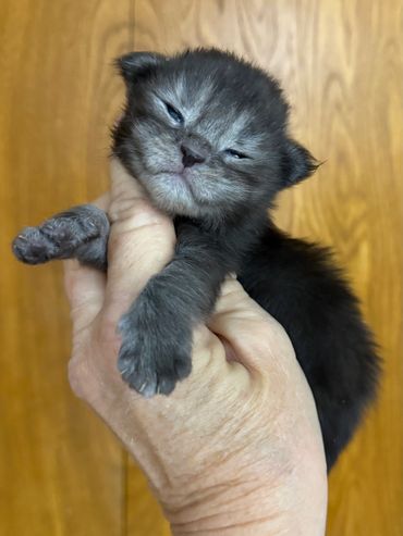 See Photos of our smoke lines in Poe and Thor, above. Both are examples of the types and colors of kittens we get from ZuZu breedings. We are breeding to focus on Silvers, Smokes, Blacks, and Blues. We are working hard to make sure we have a kitten for you.